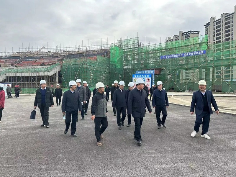 調研組一行在洋縣全民健身中心和體育場建設項目現場實地察看工程進度、建筑質量和施工安全情況。