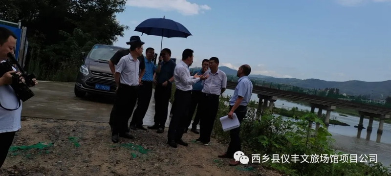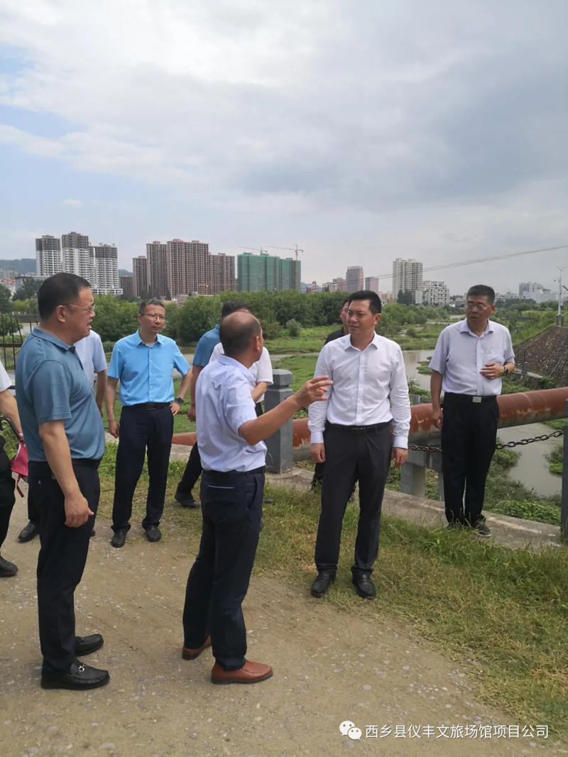 7月22日上午,西鄉縣委重點項目調研領導小組一行10余人到項目公司考察調研縣市重點項目-西鄉縣文旅場館河濱南路道路建設項目。西鄉縣委書記李代斌、副書記張洪峰、常務副縣長陳敏、縣委常委統戰部長楊先春以及縣委辦、發改局、住建局、自然資源局、城南街道辦等主要領導親臨項目現場,項目公司副總經理楊洪川以及工程部駱家衢陪同領導考察調研,并對項目前期道路設計方案進行了相關匯報。