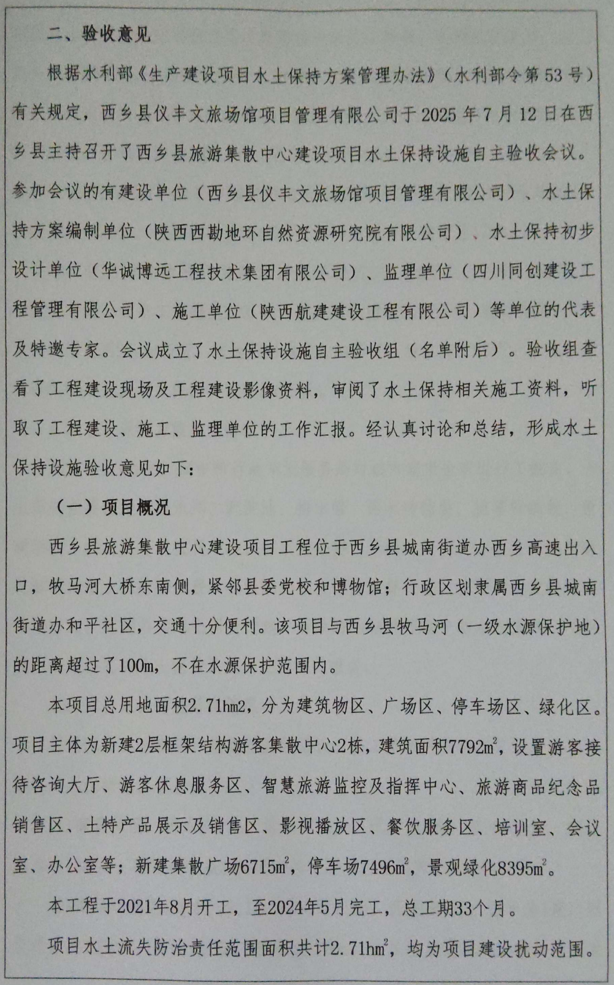 西鄉縣旅游集散中心建設項目——生產建設水土保持建設驗收鑒定書